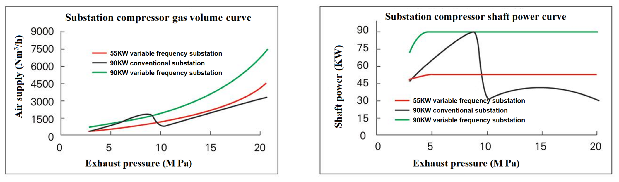 1. The average gas supply of the variable frequency 55KW substation unit is basically consistent with that of the conventional 90KW unit;
