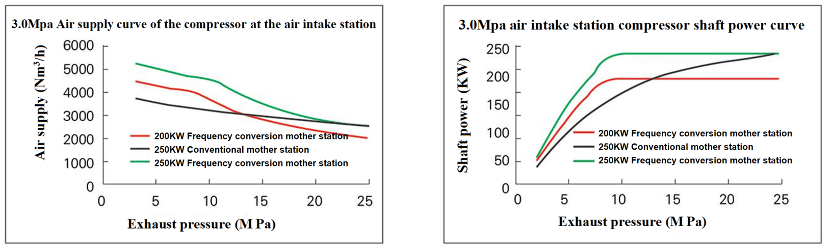 2. The average gas supply of the variable frequency 250KW mother station unit is far greater than that of the conventional 250KW unit;